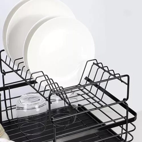 Breng stijl en functionaliteit samen in je keuken met het Cheffinger Afdruiprek met Lekbak – Zwart – 2 Etages. Dit moderne, ruimtebesparende afdruiprek is ontworpen om je afwas efficiënt te drogen zonder dat je aanrecht nat of rommelig wordt. Dankzij het tweelaagse ontwerp biedt het voldoende capaciteit voor borden, bekers, glazen én bestek, ideaal voor dagelijks gebruik in elk huishouden.