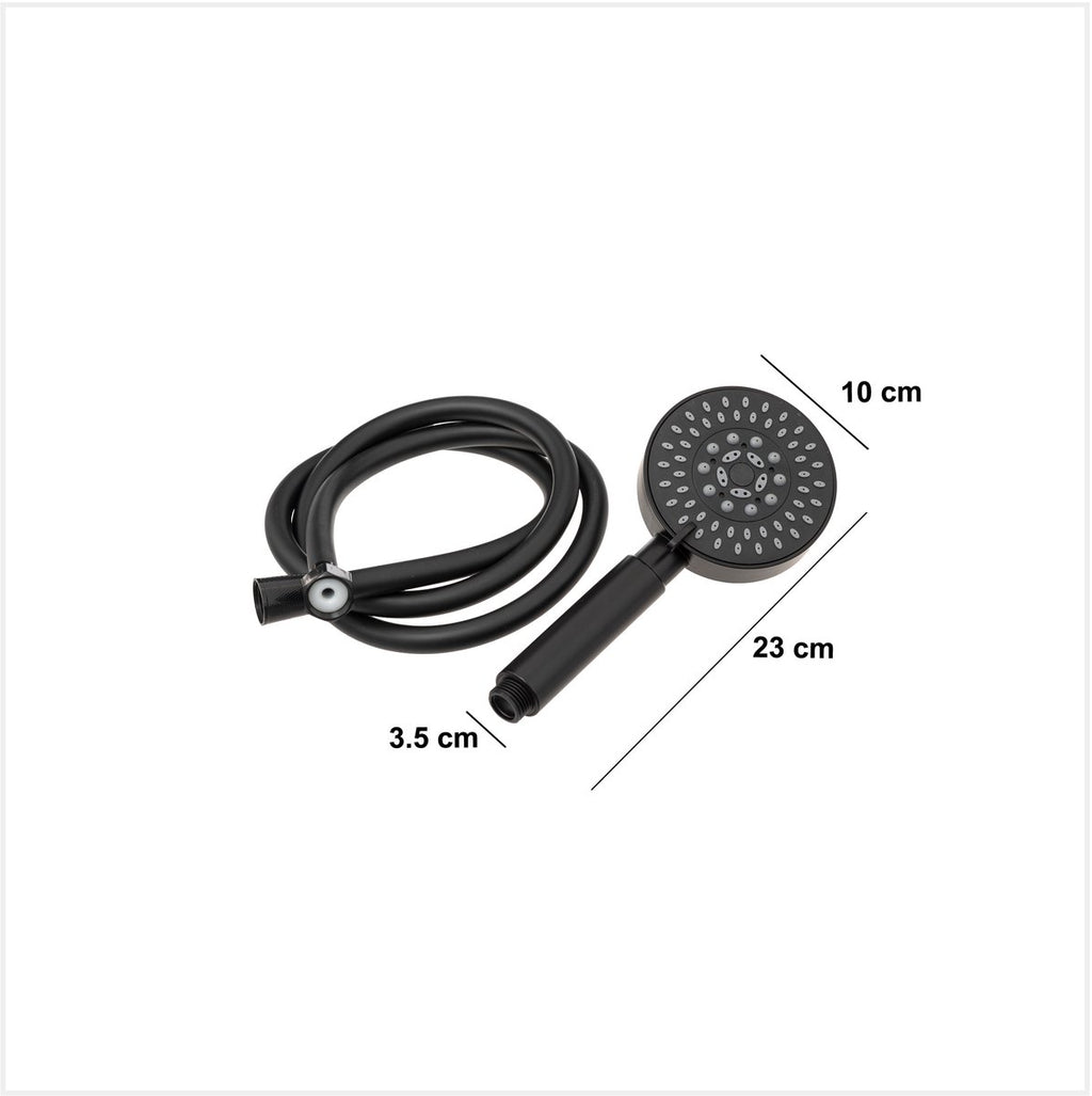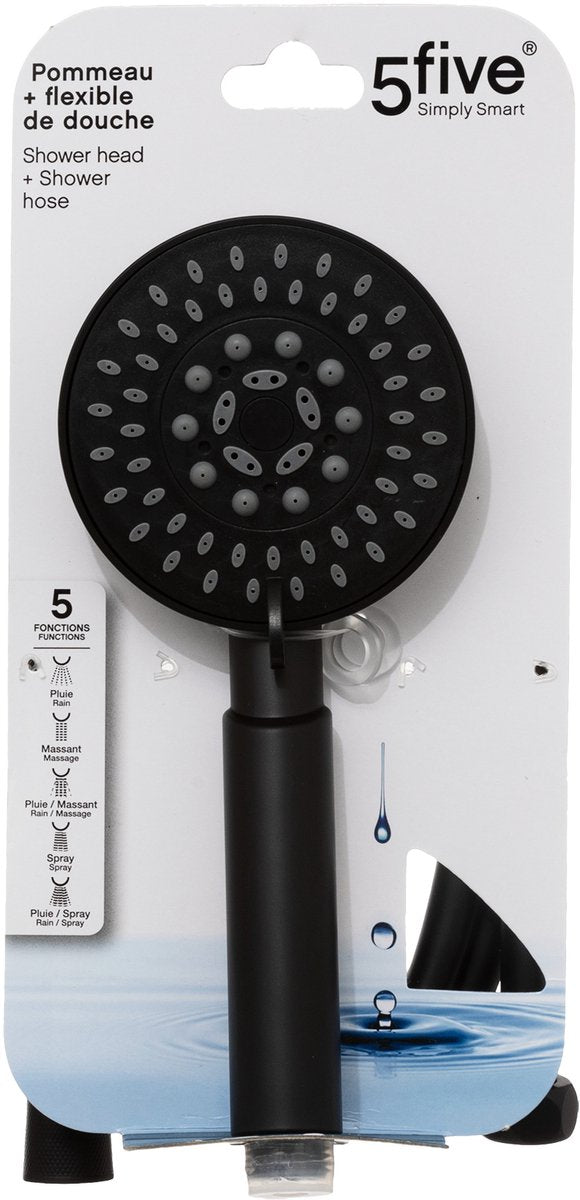 Verleihen Sie Ihrer Dusche mit dieser schwarzen 5Five Handbrause und dem passenden , 150 cm langen Duschschlauch ein stilvolles Upgrade. Die 5 einstellbaren Strahlarten sorgen für ein entspannendes oder belebendes Duscherlebnis – ganz nach Ihren Wünschen. Dank des universellen Designs lässt sich dieses Set werkzeuglos an nahezu jedem Duschschlauch montieren. Der breite 10-cm-Duschkopf garantiert eine großzügige Wasserverteilung, während das elegante schwarze Design perfekt in moderne Badezimmer passt.