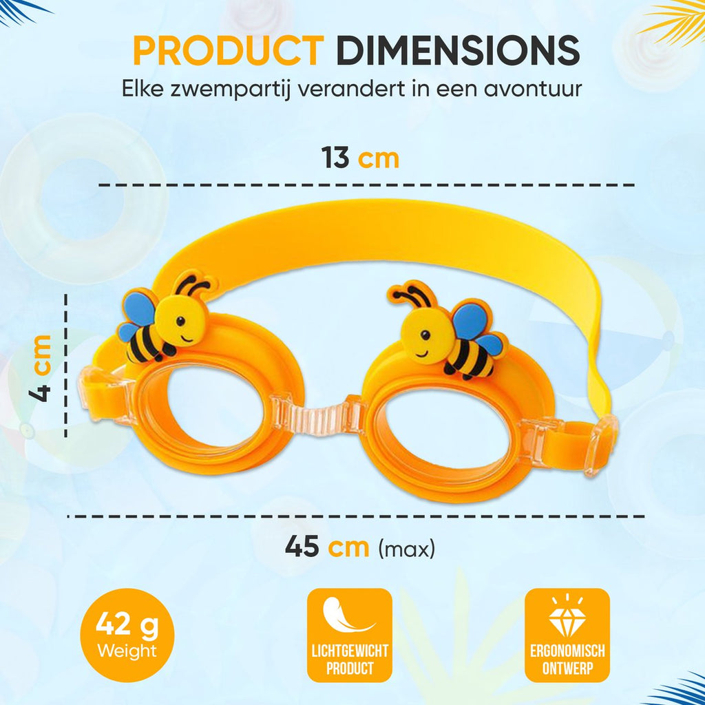 Laat je kind stralen als een bij in het water met deze unieke zwembril – fun, veiligheid en stijl in één!