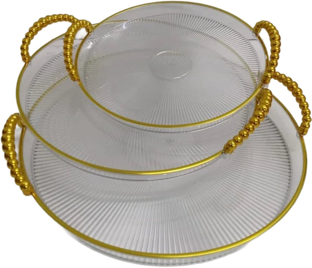 Een stijlvolle combinatie van elegantie en gebruiksgemak — de Hauskraft dienbladen set in transparant met goud is een echte blikvanger in elk interieur. Deze 3-delige ronde dienbladen set voegt een vleugje luxe toe aan elk moment, of je nu gasten ontvangt, ontbijt op bed serveert of decoratieve items wilt presenteren. De subtiele gouden accenten geven een moderne, glamoureuze uitstraling die moeiteloos past bij elke woonstijl.