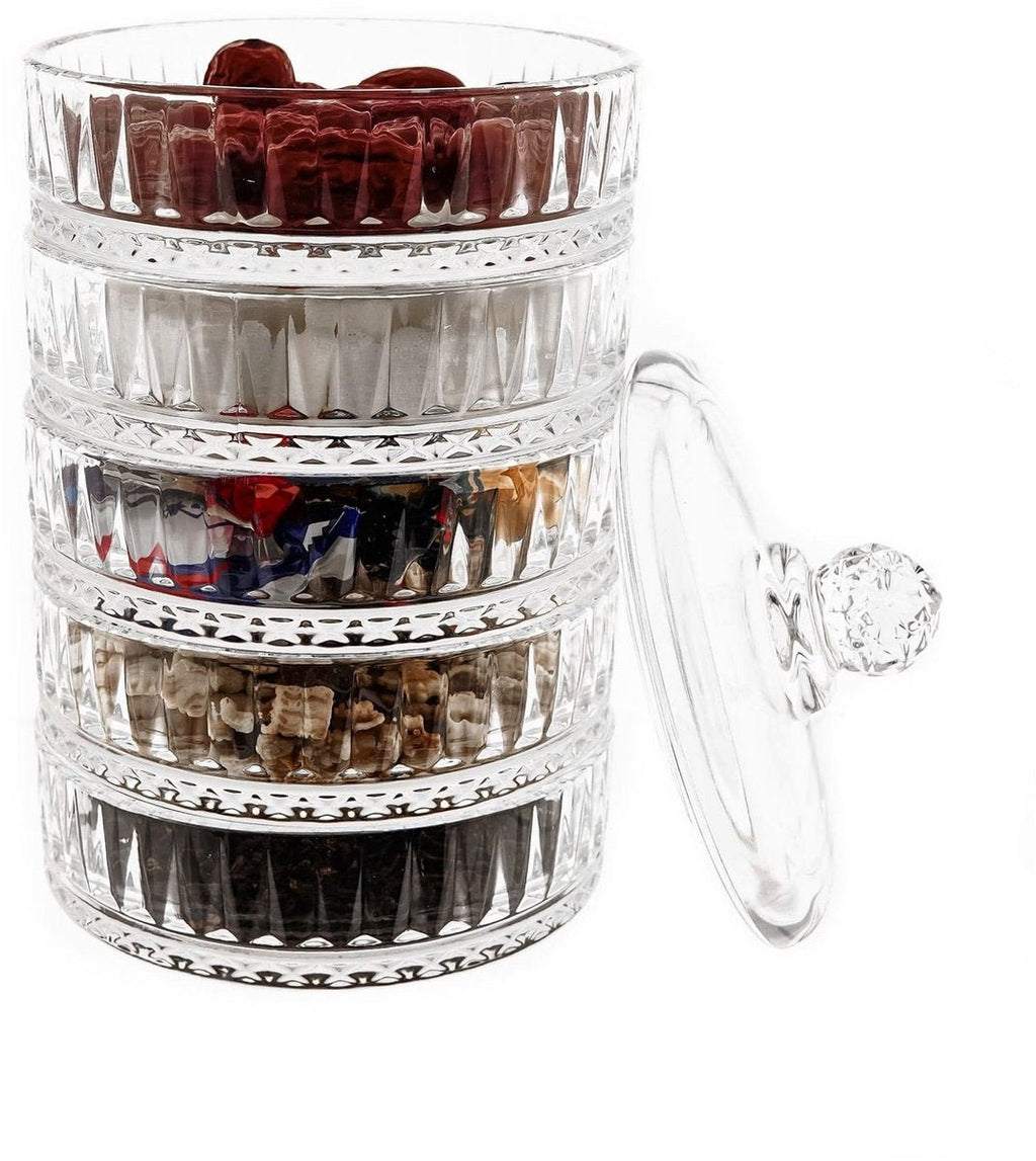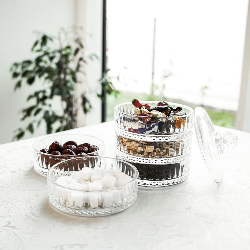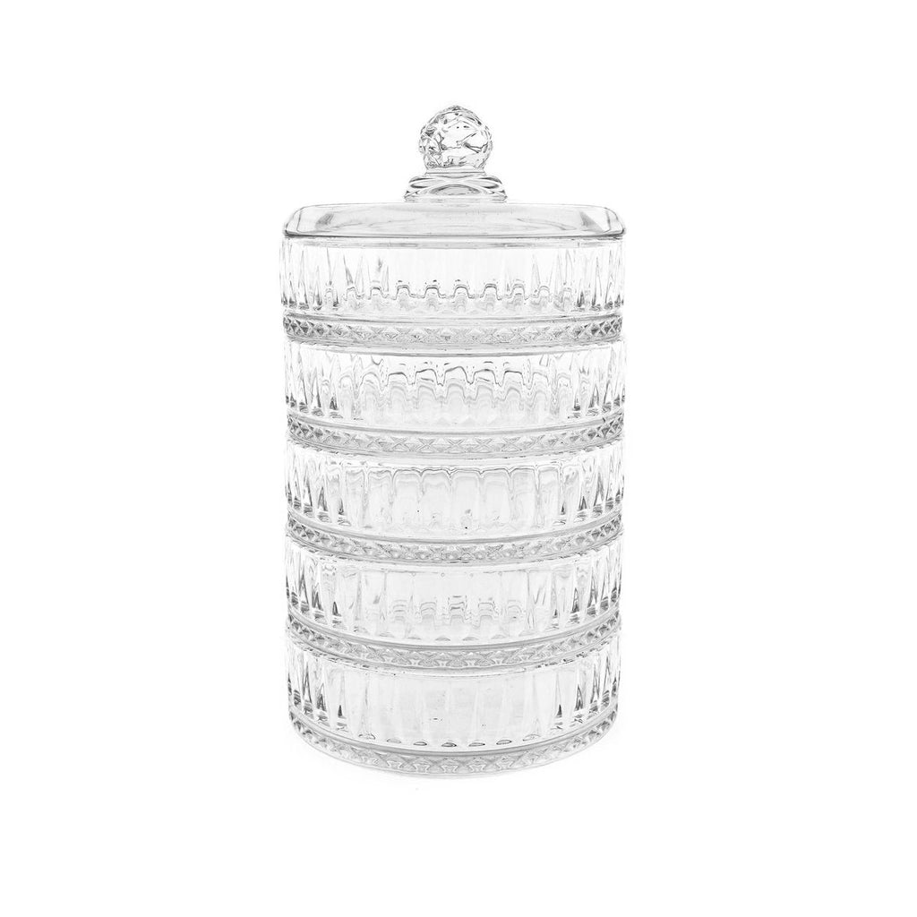 Give your treats a stylish place with the Almina Elisa bonbonnière – an elegant 5-layer glass storage jar with lid. Thanks to the smart, stackable design Save space without compromising on appearance. The refined riffle pattern gives the jar a modern and luxurious look, ideal for presenting sweets, cookies, nuts or small desserts on the table or in the kitchen.