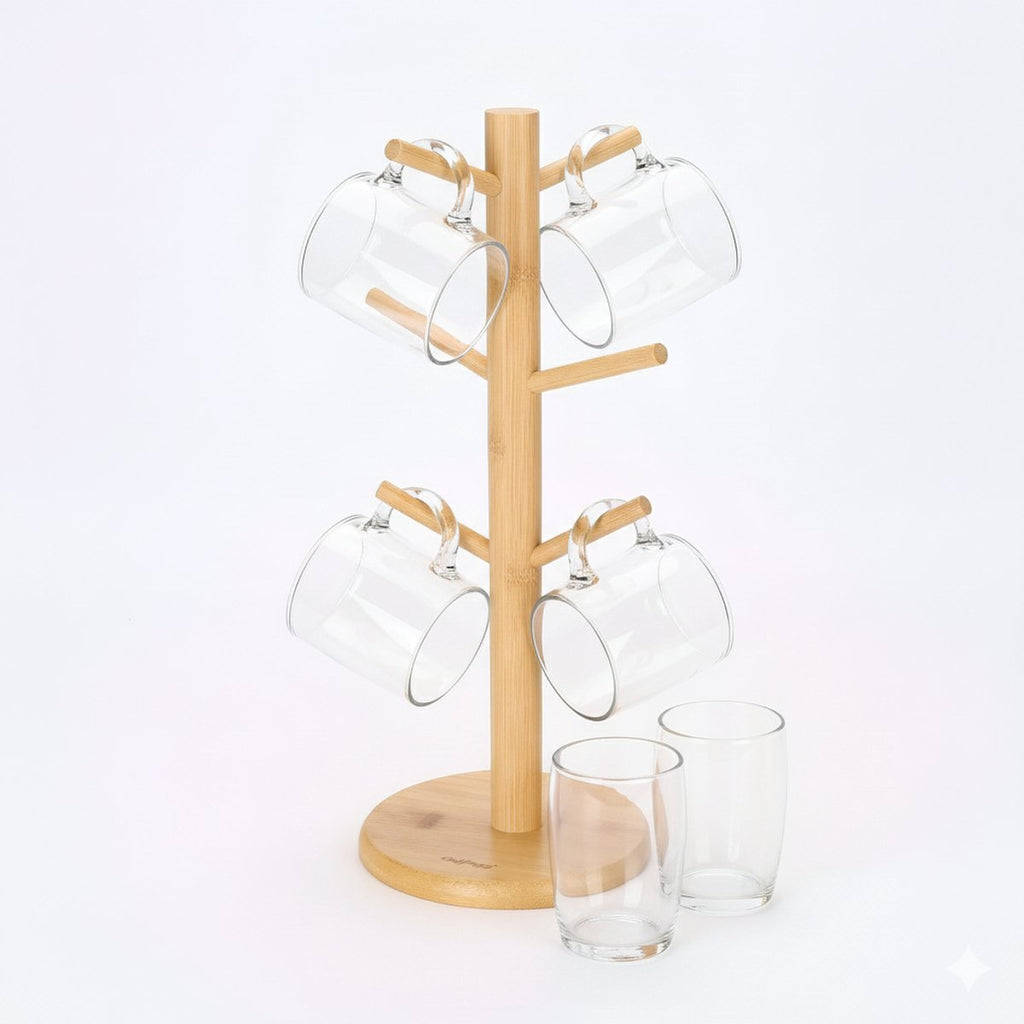 Bring order and style to your kitchen with the Cheffing bamboo glass holder . This sturdy stand offers space for multiple glasses and ensures that they hygienic, clear and within reach Made from sustainable bamboo, this is an environmentally friendly and stylish solution for any kitchen or dining table.
