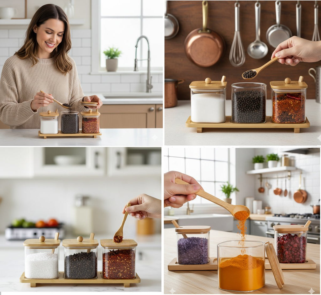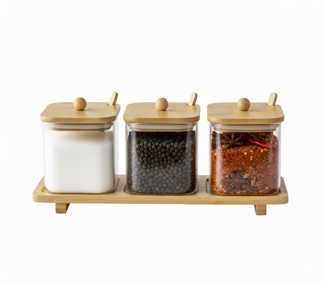 It Cchefer bamboo spice rack with three pots is the perfect combination of functionality, natural elegance and organization – a stylish addition to any kitchen.