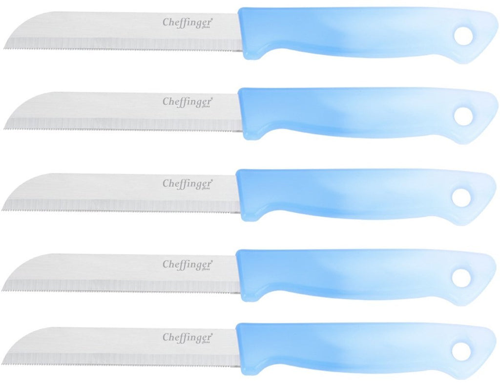 With the Cheffinger light blue paring knife set - 5 pieces, you choose practical, durable and fresh knives that are indispensable in any kitchen.