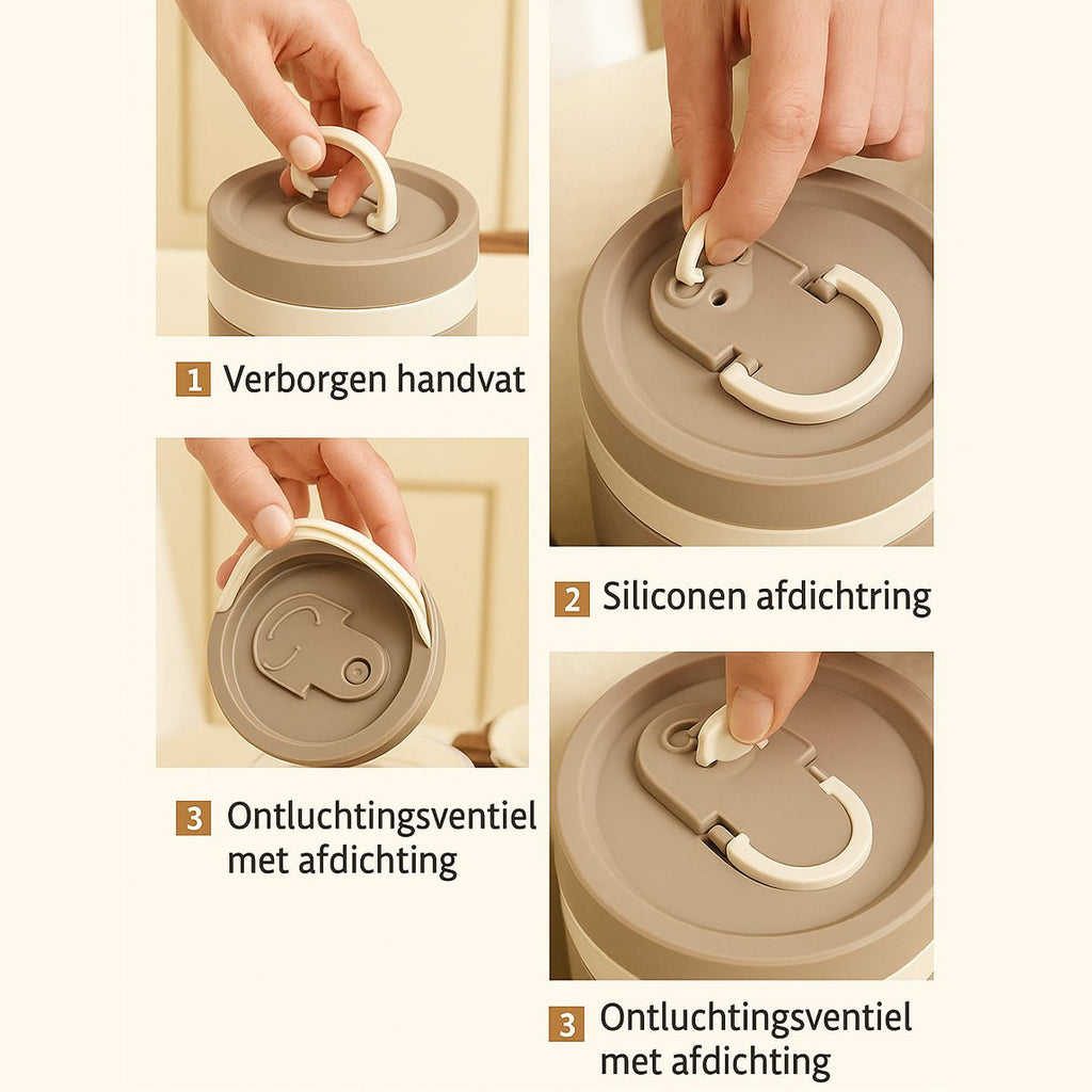 Whether you're commuting to work, school, or planning a day out, the Hauskraft Lunch Container Set in Beige with a matching carrying bag lets you take your meals with you in style and safety. This set includes four thermally insulated containers in two convenient sizes, plus a handy bag to keep everything neat and compact. Thanks to the clever design, your food stays warm or fresh for longer , while the leak-proof system with a steam valve ensures worry-free transport – without any mess.