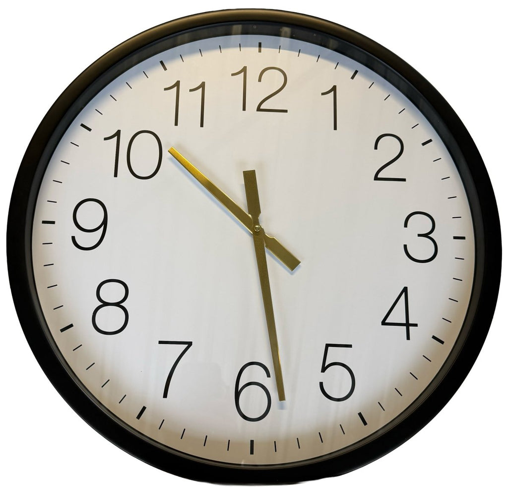 Give your interior a modern and luxurious look with the Hauskraft Wall Clock (45 cm) with a black frame, white dial, and gold hands . This clock combines sleek minimalism with a touch of elegance, making it a stylish addition to any room. The contrast between the deep black frame and the bright white background creates a fresh and timeless look, while the gold hands add a subtle touch of chic.