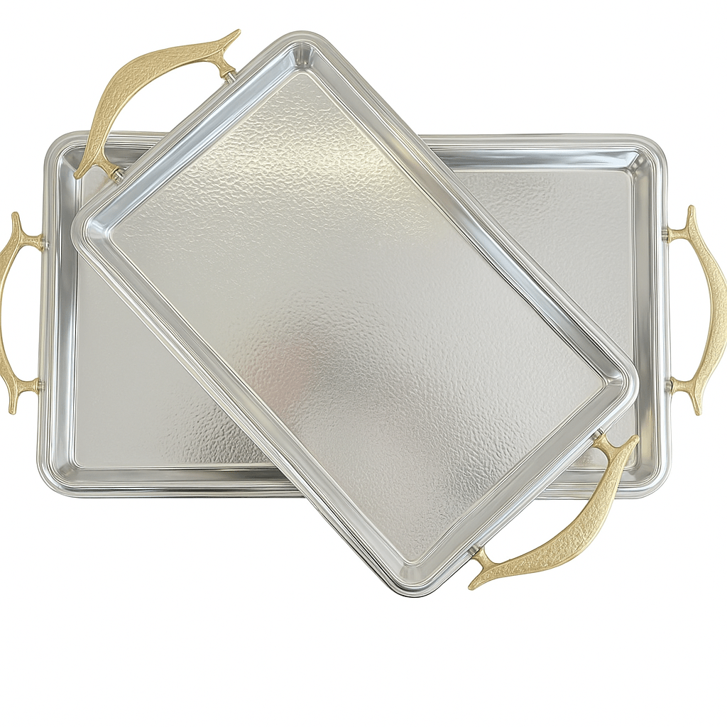 De Kadirelli zilveren dienbladenset is een combinatie van stijl, kwaliteit en functionaliteit – ideaal voor wie houdt van een chique en tijdloze uitstraling in huis.