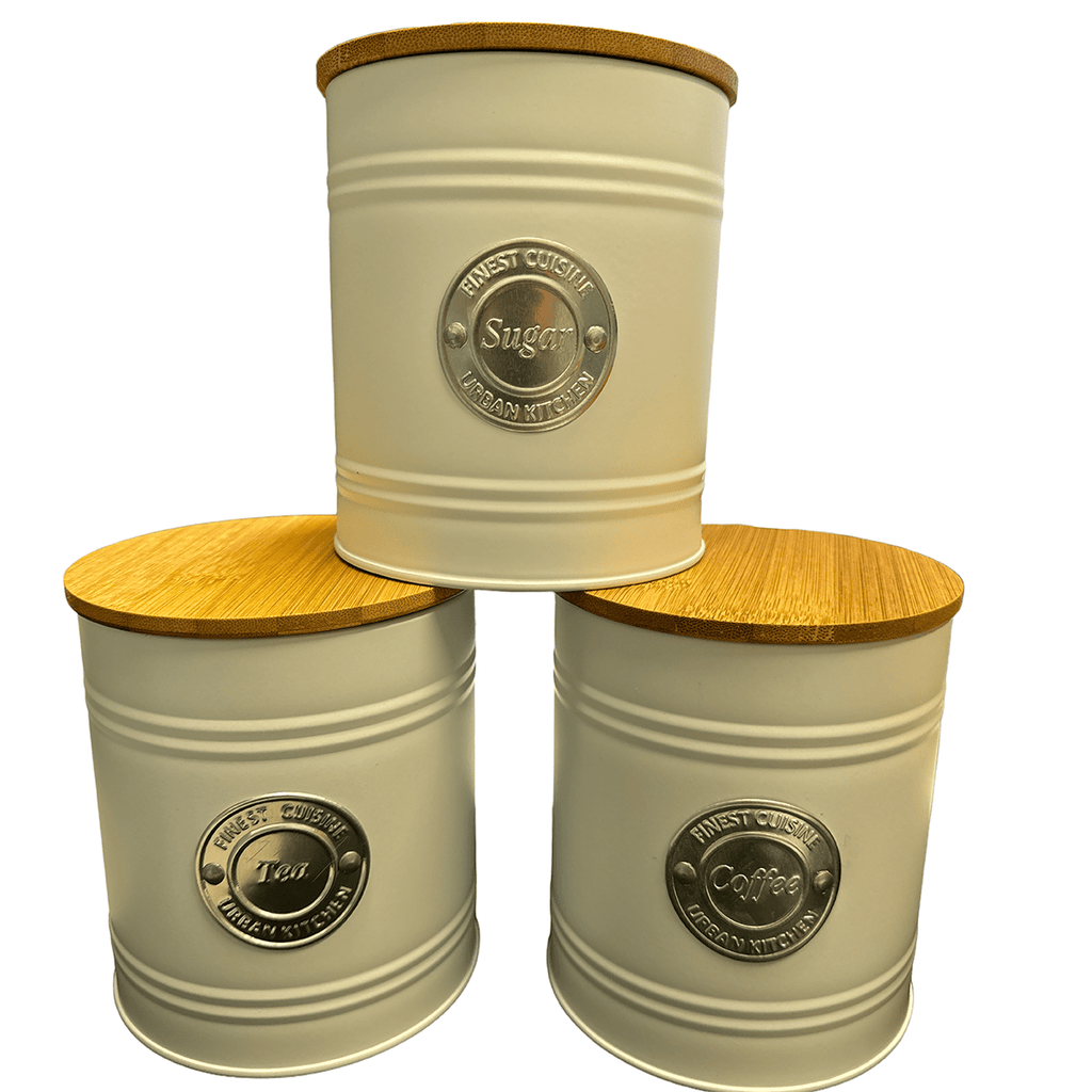 Give your kitchen a stylish and practical upgrade with this set of three authentic storage tins . Designed in a timeless black lacquered metal , these tins are not only an elegant addition to your kitchen but also perfect for airtight storage of everyday items like sugar, tea, and coffee.