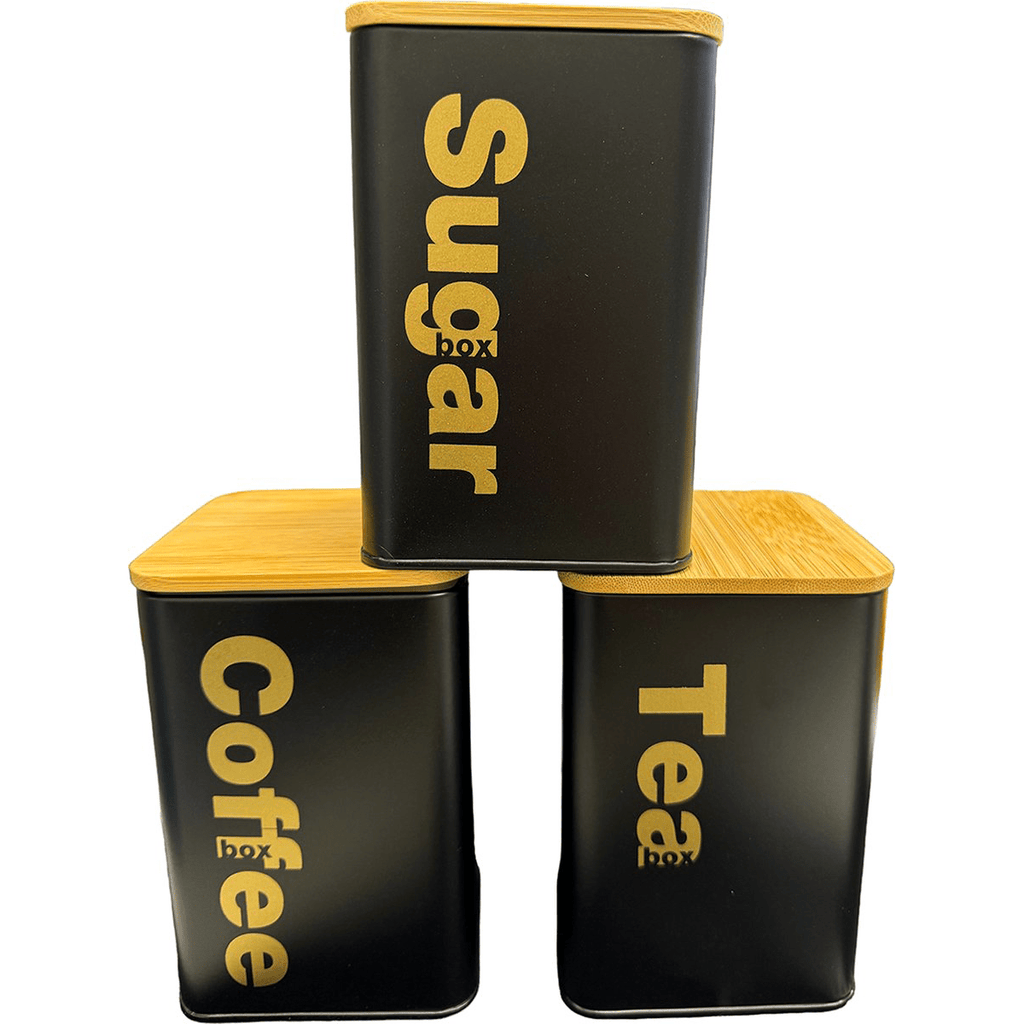 Bring style and organization to your kitchen with this set of three authentic storage tins – the perfect combination of functionality and elegance. Ideal for storing sugar, tea, and coffee, they're designed to be both practical and decorative. The lacquered metal in a stylish black creates a timeless look that will effortlessly complement any kitchen decor.