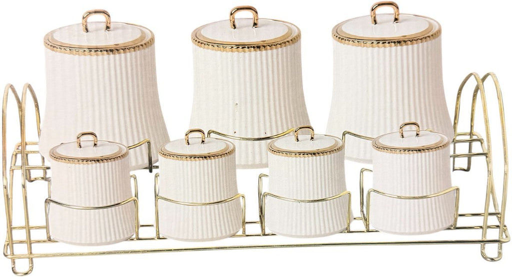 Til je keukeninrichting naar een hoger niveau met het Almina Kruidenrek – een 15-delige set met 7 luxe porseleinen kruidenpotjes in wit met goudaccenten. Dit stijlvolle kruidenrek combineert elegantie met functionaliteit en zorgt ervoor dat jouw favoriete kruiden altijd overzichtelijk en binnen handbereik zijn. De verfijnde uitstraling maakt dit rek niet alleen praktisch, maar ook een echte eyecatcher op je aanrecht of in je open keukenkast.