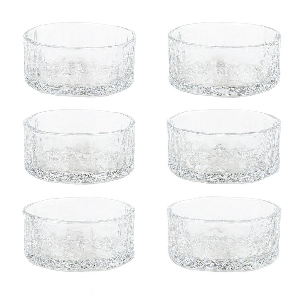 Breng sfeer en elegantie naar je tafel met de Snow Buccia glasschalen van Almina. Deze 6-delige set combineert een robuuste uitstraling met een verfijnde ijsstructuur, perfect voor het stijlvol serveren van desserts, hapjes, salades of kleine lekkernijen. Het helder glas met structuur zorgt voor een luxueus effect dat prachtig staat op elke gedekte tafel.