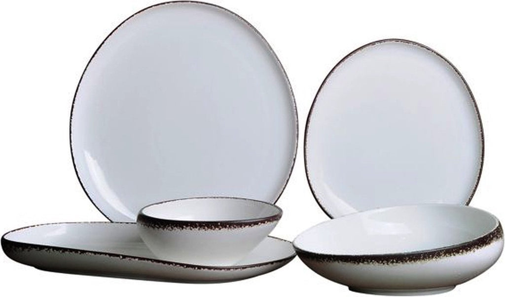 - Inhoud set: 6 dessertbordjes (23 cm), 6 dinerborden (27 cm), 6 slakommen (21 cm), 6 soepkommen (15 cm) en 1 serveerschaal (30 cm)