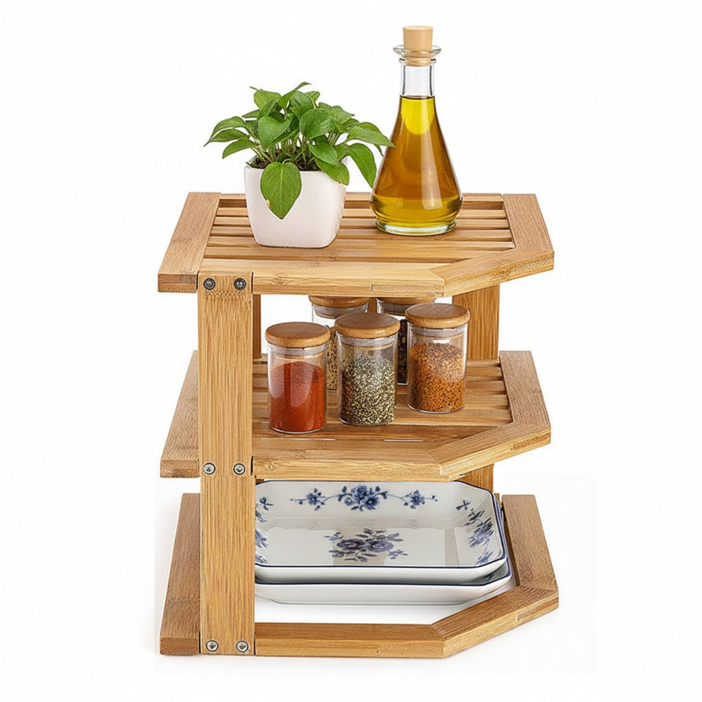 Het Cheffinger 3-laags bamboe keukenrek combineert functionaliteit met natuurlijke schoonheid – de ideale oplossing voor een georganiseerde en stijlvolle keuken.
