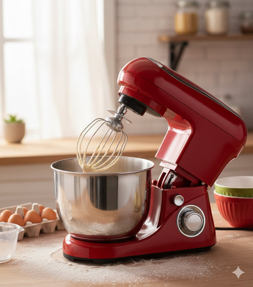 Breng kracht en stijl samen in jouw keuken met de Cheffinger Keukenmachine in opvallend rood. Deze moderne keukenrobot is niet alleen een echte blikvanger op je aanrecht, maar ook een onmisbare hulp bij al jouw bak- en kookavonturen. Met een krachtige 1600W motor en een ruime 6,5 liter mengkom bereid je moeiteloos alles van luchtig beslag tot stevig deeg. Ideaal voor zowel dagelijks gebruik als uitgebreide bakprojecten.