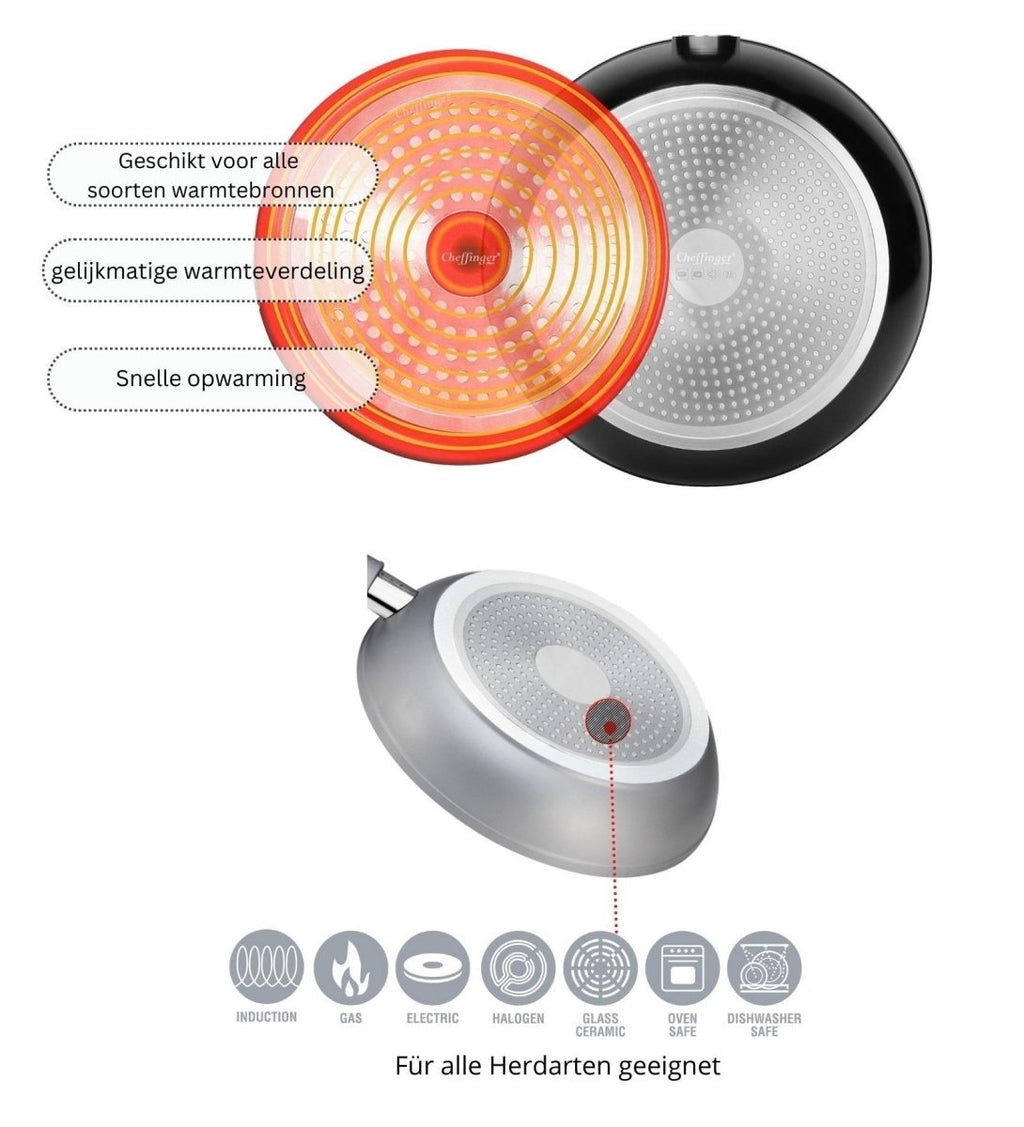 Of je nu een beginnende kok bent of een doorgewinterde chef: deze Cheffinger koekenpannenset maakt elke kookervaring comfortabeler en succesvoller.