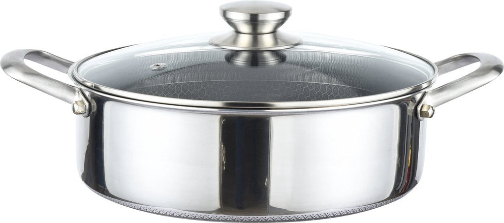 Til jouw kookervaring naar een hoger niveau met de Cheffinger Premium Lage Braadpan – dé perfecte combinatie van stijl, innovatie en functionaliteit. Met een royale diameter van 28 cm en een inhoud van 3,5 liter is deze pan ideaal voor grotere maaltijden, van sappige stoofpotten tot verfijnde sauzen. Het robuuste roestvrijstaal in combinatie met een gehard glazen deksel zorgt voor duurzaamheid en optimaal kookgemak.