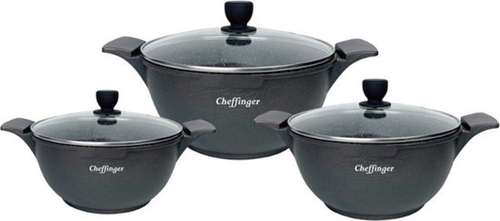 Til jouw kookervaring naar een hoger niveau met de Cheffinger Crocodile Line pannenset. Deze luxe 6-delige set in stijlvol zwart combineert een opvallend design met hoogwaardige materialen, zodat je elke dag kunt koken met gemak én uitstraling. De pannen zijn voorzien van een duurzame antiaanbaklaag met crocodile-textuur, waardoor ingrediënten niet blijven plakken en je met minder olie kunt bereiden. Ideaal voor zowel dagelijkse maaltijden als culinaire creaties.