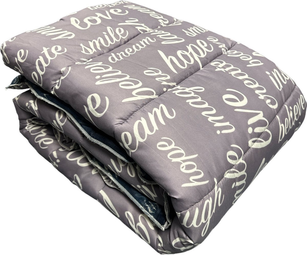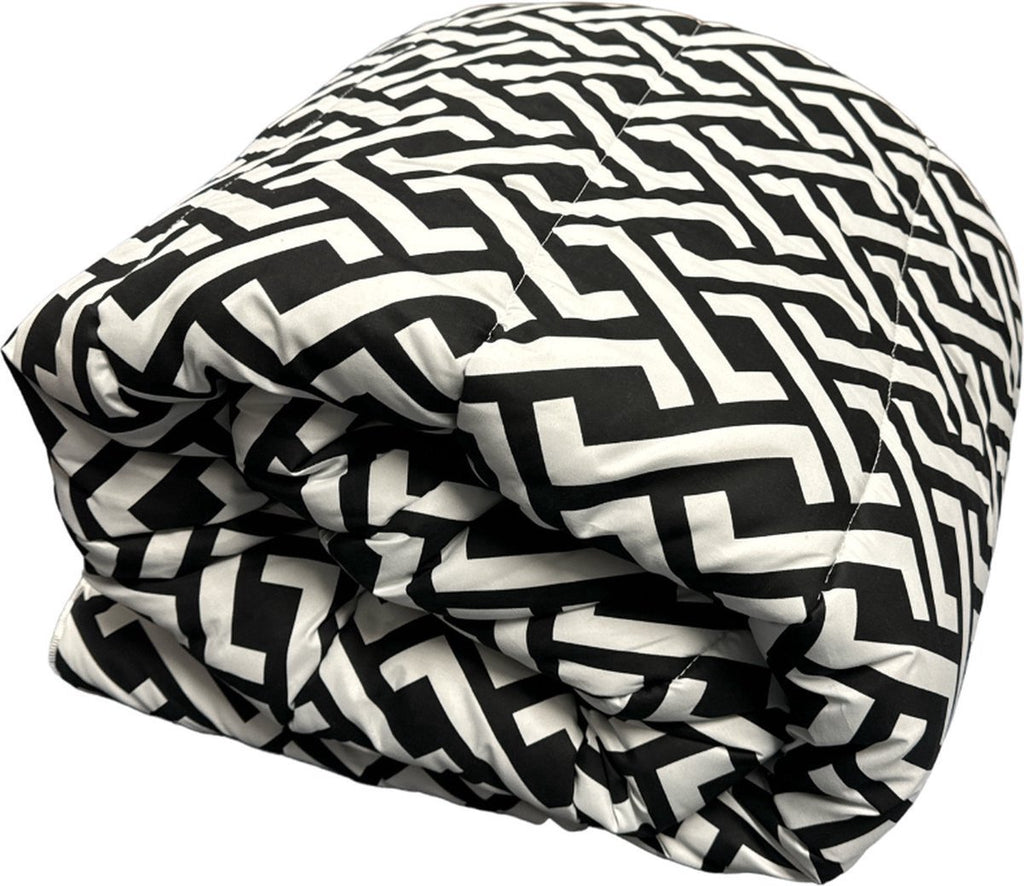 Breng stijl en comfort samen in je slaapkamer met het Kadirelli Twee-in-één Dekbed van 240x220 cm. Dit royale dekbed is perfect voor tweepersoonsbedden en geeft je direct twee looks in één: een speelse zwart/wit zigzagprint aan de ene kant en een stijlvolle grijze zijde met witte letters aan de andere. Dankzij het zachte, ademende materiaal geniet je elk seizoen van een comfortabele nachtrust, met minimale moeite in onderhoud.