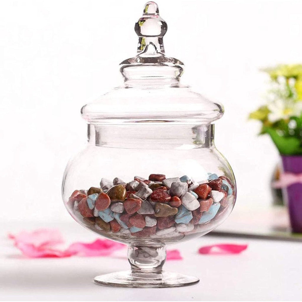 Voeg een vleugje elegantie toe aan elke feesttafel met deze Prachtige Glazen Snoeppot met Deksel – dé eyecatcher voor je candy bar, sweet table of interieurdecoratie. Dankzij het tijdloze design op een sierlijke voet presenteer je snoepjes, lekkernijen of decoratieve items op stijlvolle wijze, perfect voor bruiloften, verjaardagen, babyshowers of seizoensdecoraties.