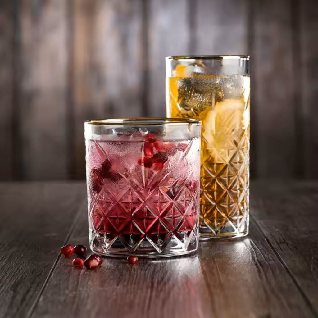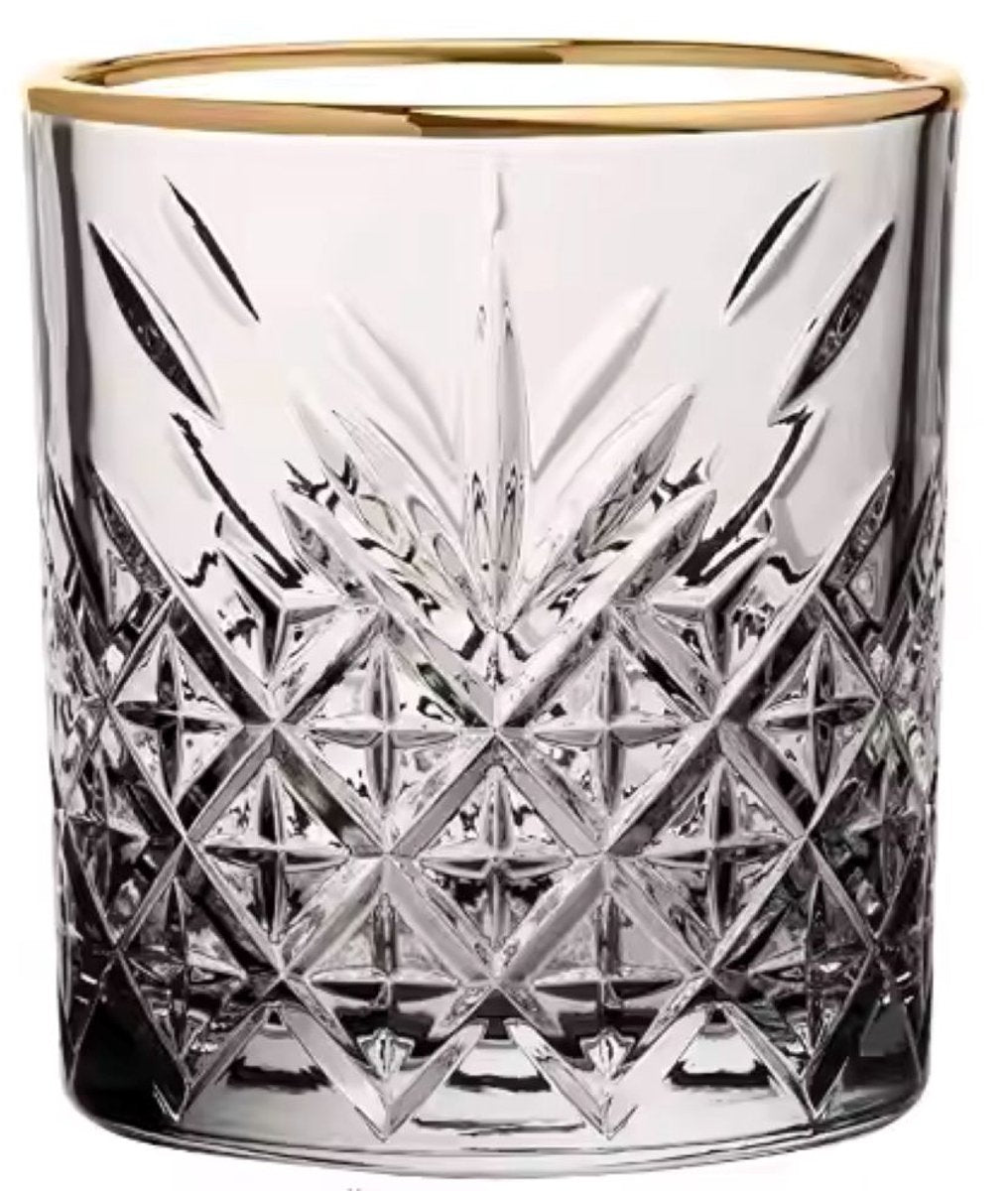 Voeg een vleugje luxe toe aan je tafel met de Glozini water- en whiskeyglazen met gouden rand. Deze set van 6 glazen (240 ml per stuk) combineert elegantie met functionaliteit, ideaal voor zowel dagelijkse momenten als speciale gelegenheden. De subtiele gouden rand geeft elk glas een verfijnde uitstraling, waardoor je drankjes nog feestelijker aanvoelen – of je nu water, fris, whiskey of cocktails serveert.