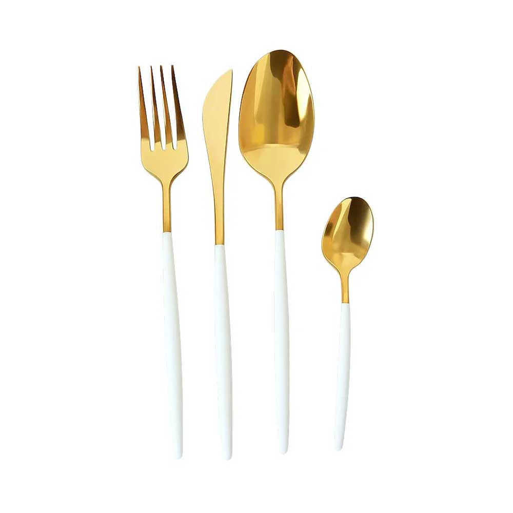 Voeg een vleugje luxe toe aan je eetmomenten met deze stijlvolle goud/witte bestekset – een perfecte keuze voor jezelf of als geschenk voor een speciale gelegenheid!