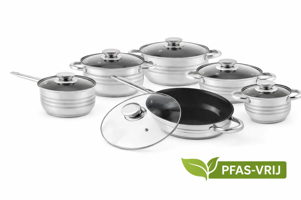De pannen zijn vervaardigd uit duurzaam roestvrij staal en volledig PFAS-vrij, zodat je met een gerust hart kookt zonder schadelijke stoffen. De glazen deksels met RVS handgreep zorgen ervoor dat je het kookproces eenvoudig in de gaten houdt zonder warmte te verliezen. Geschikt voor alle warmtebronnen, inclusief inductie, waardoor deze set perfect past in elke keuken.