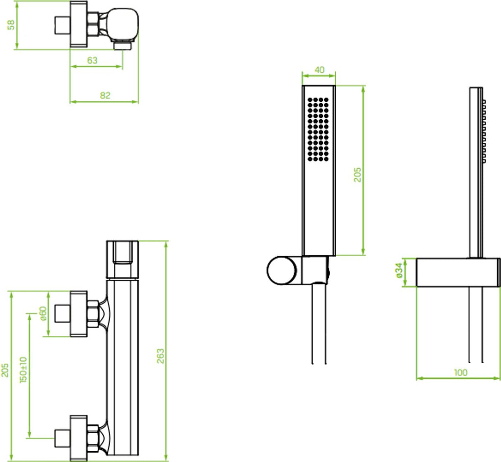 - Vorm: Wandgemonteerde bad- en douchemengkraan