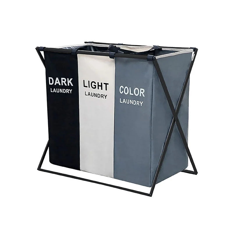 Bespaar tijd met de was – Dankzij de 3 vakken (elk 35 liter) kun je eenvoudig zwart, wit en bont gescheiden verzamelen. Uitgeklapt meet de mand 60 × 50 × 35 cm.
