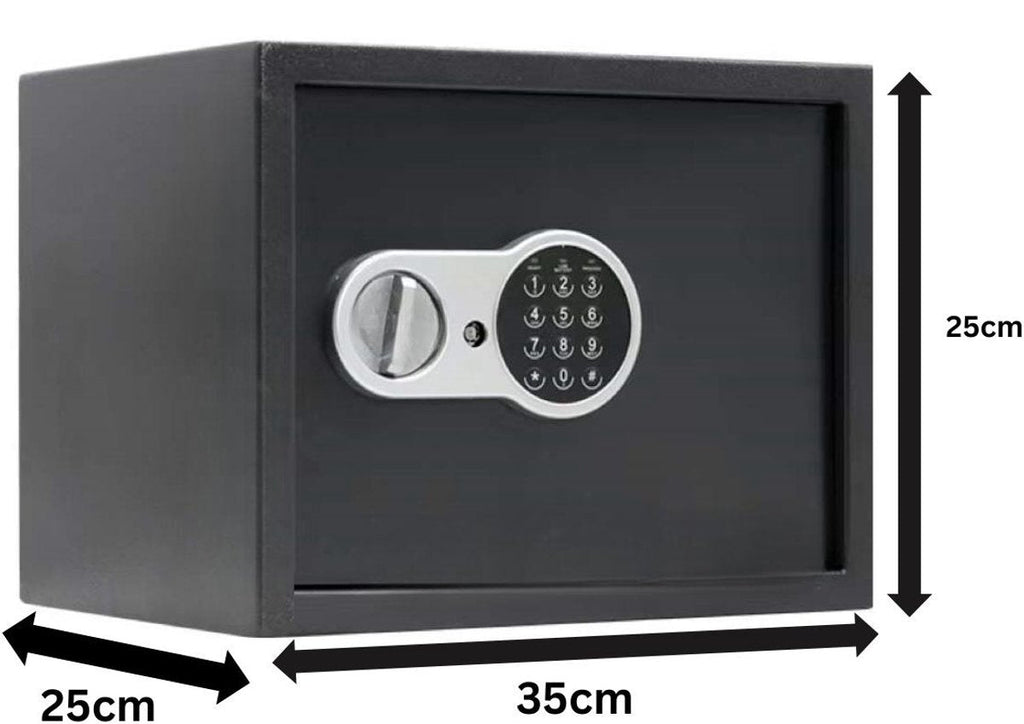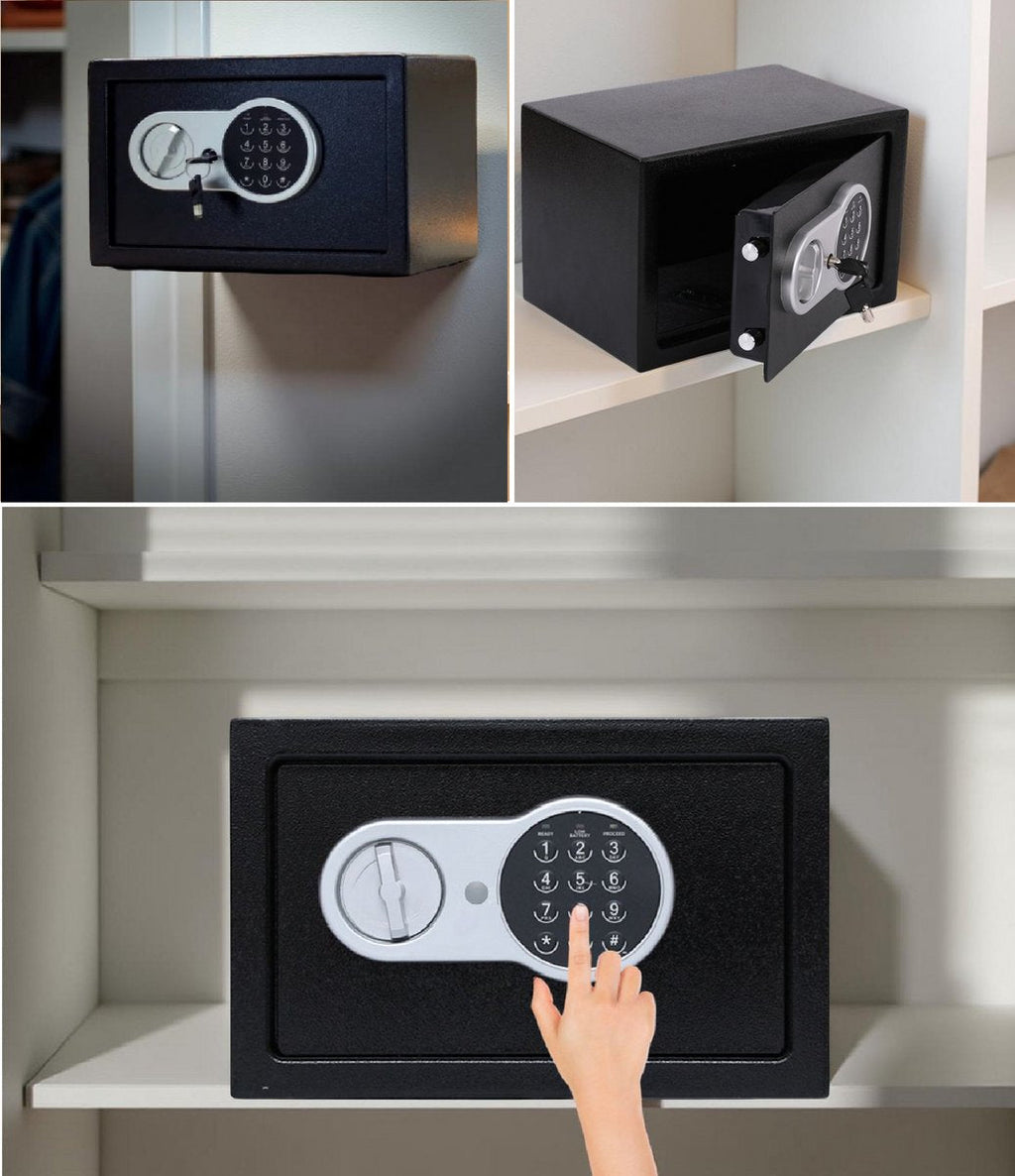 Houd je waardevolle spullen veilig en georganiseerd met de kluis met cijferslot en noodsleutel (16 liter). Deze compacte kluis is gemaakt van stevig staal en biedt optimale bescherming voor geld, sieraden, documenten en kleine elektronica. Dankzij het elektronische cijferslot met instelbare pincode heb je altijd veilige toegang, terwijl de noodsleutel zorgt voor extra zekerheid bij lege batterijen of een vergeten code. Met zijn afmetingen van 25 x 35 x 25 cm en een gewicht van ca. 6,3 kg is hij eenvoudig te plaatsen in een kast, lade of aan de muur of vloer te bevestigen. Het uitneembare legbord zorgt voor een flexibele indeling.