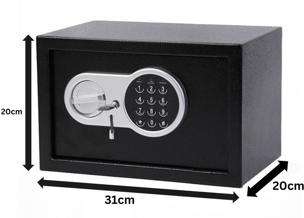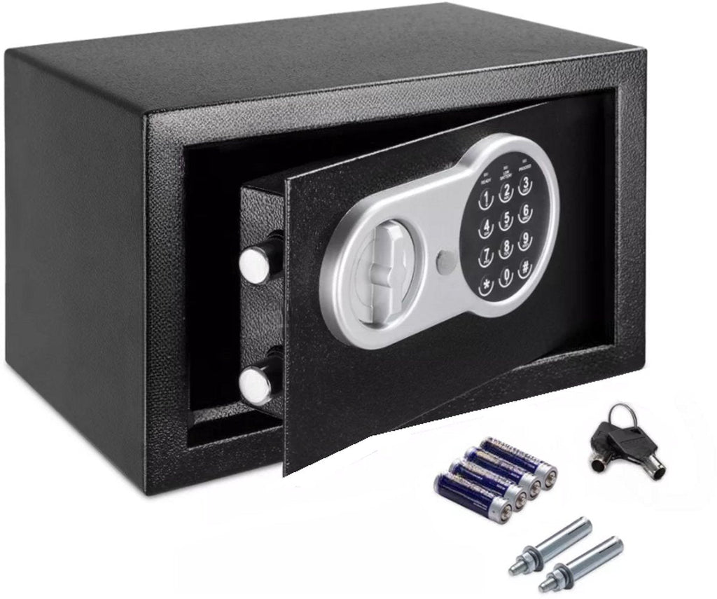 Bescherm je waardevolle spullen met deze kluis met cijferslot en noodsleutel (8,5 liter). Dankzij zijn compacte formaat van 31 x 20 x 20 cm en stevige stalen constructie is hij ideaal voor thuis, op kantoor of in een hotelkamer. De kluis beschikt over een elektronisch cijferslot met een instelbare pincode en een mechanische noodsleutel, zodat je altijd toegang hebt – zelfs bij lege batterijen of een vergeten code. Met de voorgeboorde gaten en meegeleverde schroeven monteer je hem eenvoudig aan de muur of vloer.